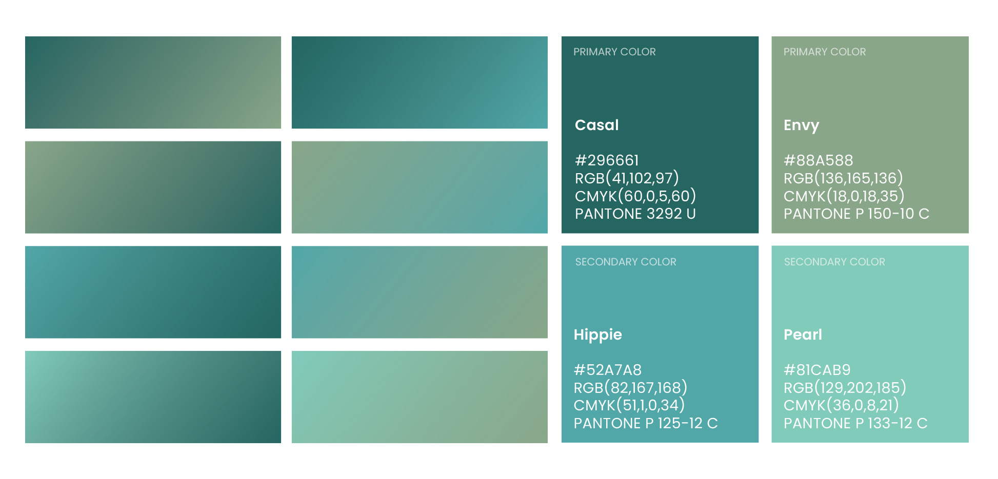 The logo was inspired by organic forms, a symbol of harmony and connection. The palette of soft greens and blues are designed to evoke calm, trust, and renewal.